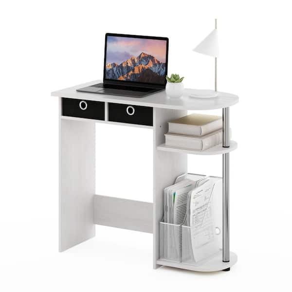 32 in. Rectangular White Oak/Stainless Steel 2 Drawer Computer Desk with Built-In Storage