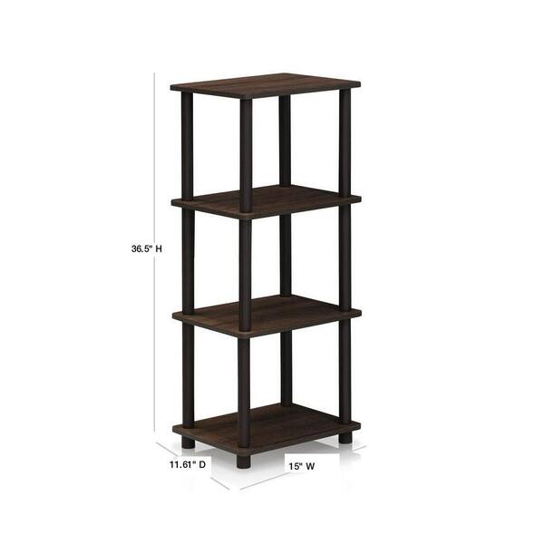 36.5 in. Walnut/Brown Plastic 4-shelf Etagere Bookcase with Open Back