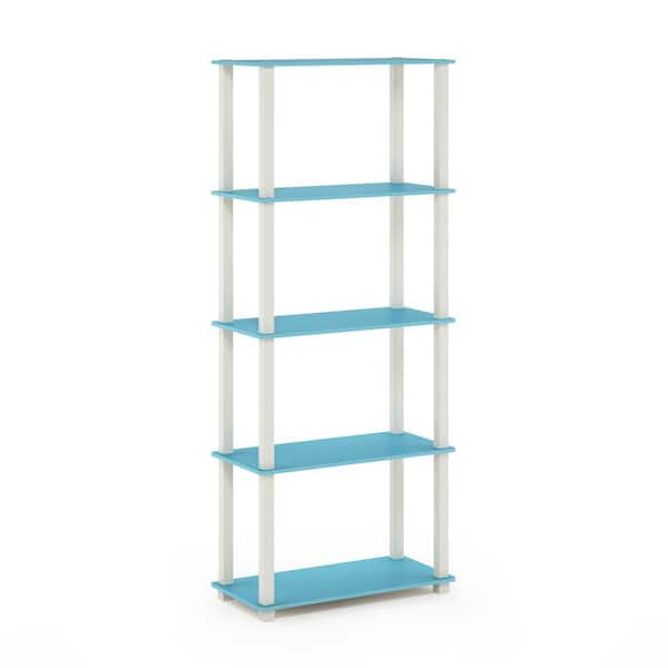 57.4 in. Tall Light Blue/White 5-Shelves Etagere Bookcases