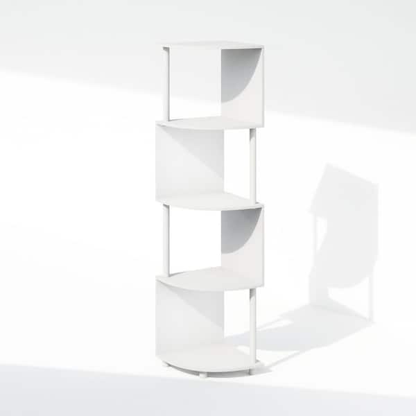 Basic 57.72 in. Tall White/White Wood 4-Shelf Corner Bookcase with Zigzag Design