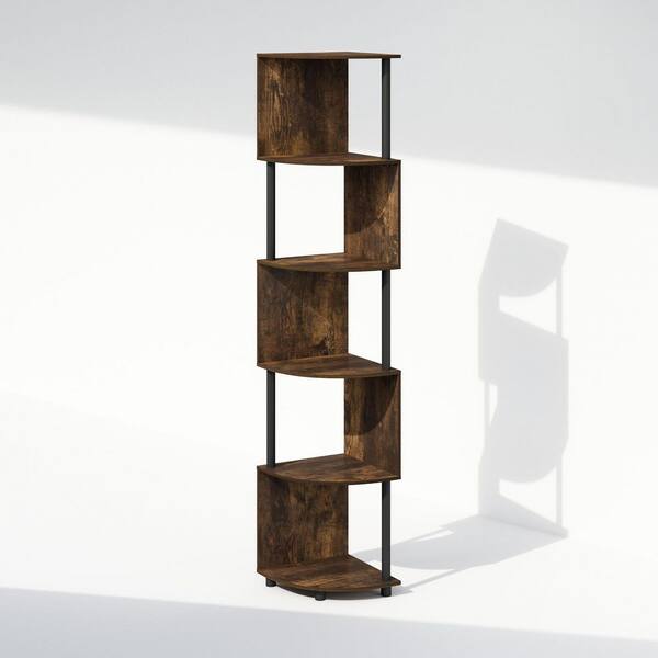 Basic 71.26 in. Tall Amber Pine/Black Wood 5-Shelf Corner Bookcase with Zigzag Design