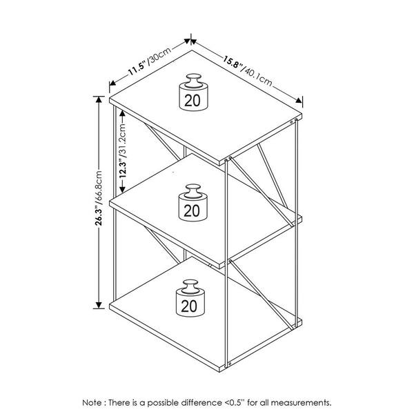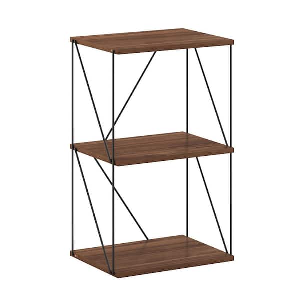 Besi 16.54 in. W Walnut Cove 3-Tier Industrial Bookcase with Metal Frame