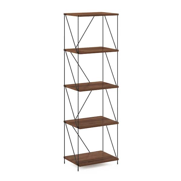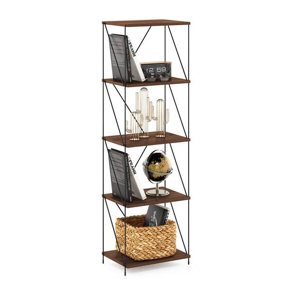 Besi 16.54 in. W Walnut Cove 5-Tier Industrial Bookcase with Metal Frame