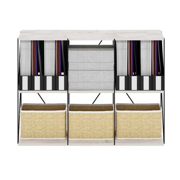 Besi 26.26 in. Tall Marble White Wood 6-Shelf Etagere Bookcase with Metal Frame