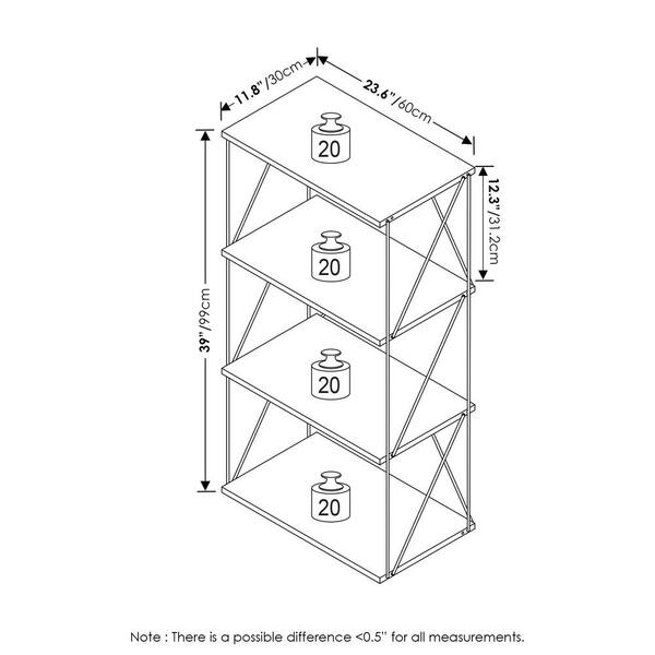 Besi 39.06 in. Tall Columbia Walnut Wood 4-Shelf Bookcase with Metal Frame