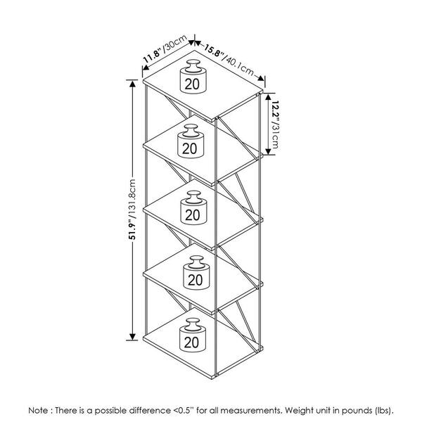 Besi 51.89 in. Tall French Oak Grey Wood 5-Shelf Bookcase with Metal Frame