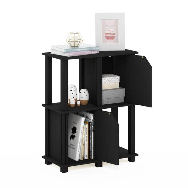 Brahms 29.85 in. Black Oak 3-Shelf Etagere Bookcase with 2-Doors