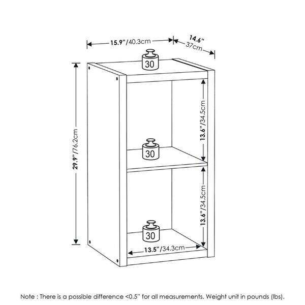 Cubicle 30 in. Tall Dark Oak Wood 2 Shelf Open Back Bookcase