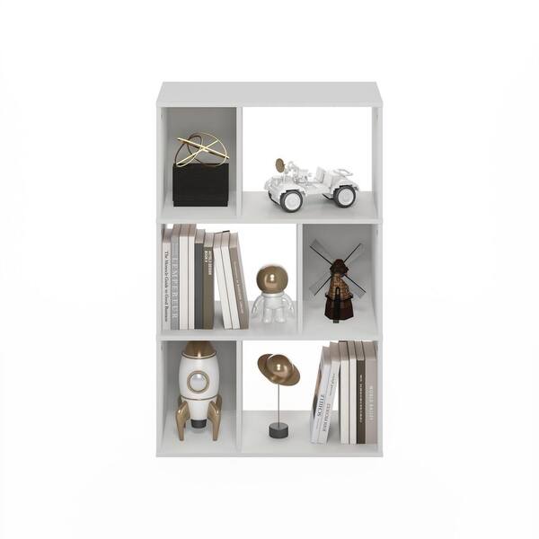 Daly 36.85 in. Tall White Wood 6-Shelf Irregular Cubes Bookcase