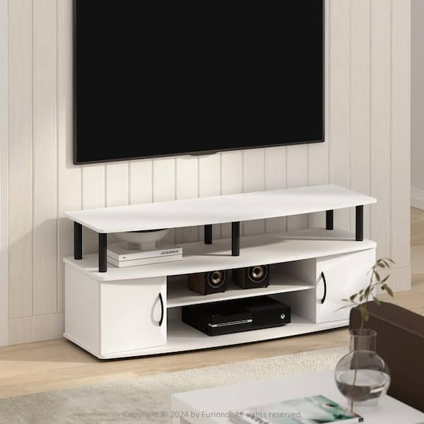 JAYA Plain White/Black TV Stand Entertainment Center Fits TV's up to 55 in.