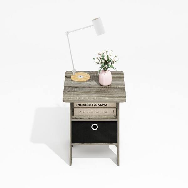 Modern 15.6 in. Grey Oak Wood End Table with Bin Drawer