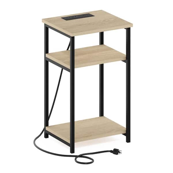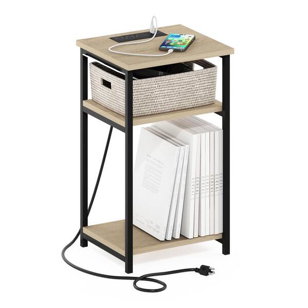 Moretti 13.9 in. Bauhaus Oak Rectangle Wood 3-Tier End Table with USB and Type-C Charging Port