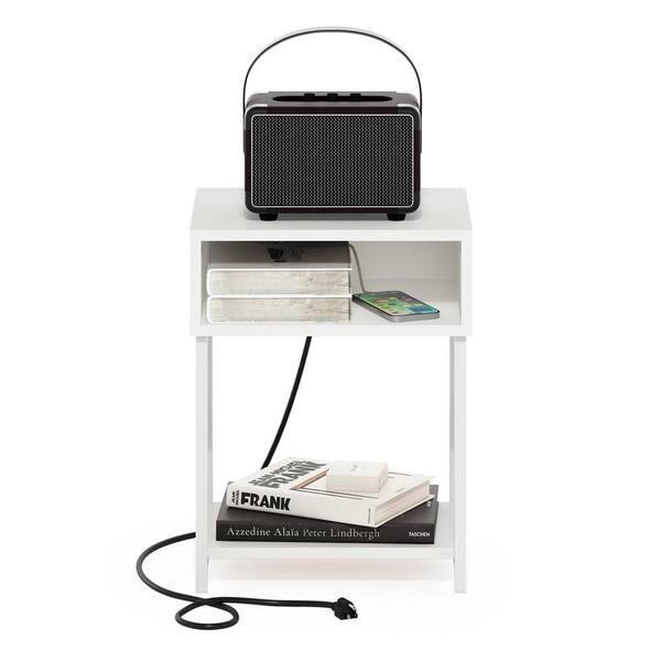 Moretti 15.2 in. White/White Rectangle Wood End Table with USB and Type-C Charging Port