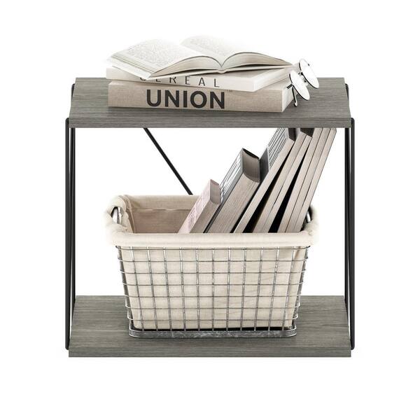 Rata 15.75 in. French Oak Grey Rectangle Wood End Table with Metal Frame