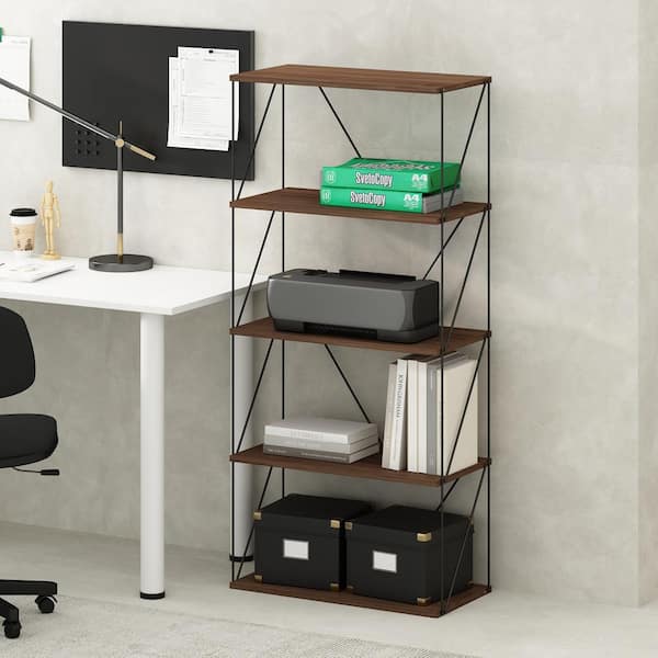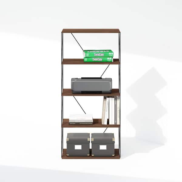 Rata 51.89 in. Tall Columbia Walnut Wood 5-Shelf Flat Base Bookcase with Metal Frame