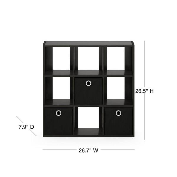 Simplistic 26.5 in. Tall Espresso Wood 9-Shelf Open Shelf Bookcase with Bins