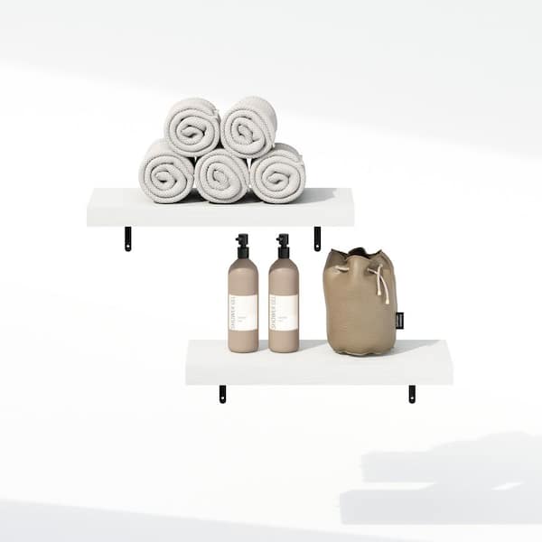 Tanna 1.65 in. Tall White Texture Wood Wall Mounted Bookcase (Set of 2)