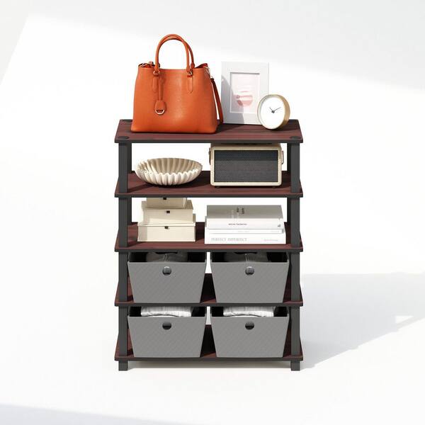 Turn-S-Tube 15.4 in. Tall Dark Cherry/Black Wood 3-Shelf Stackable Bookcase (Set of 2)
