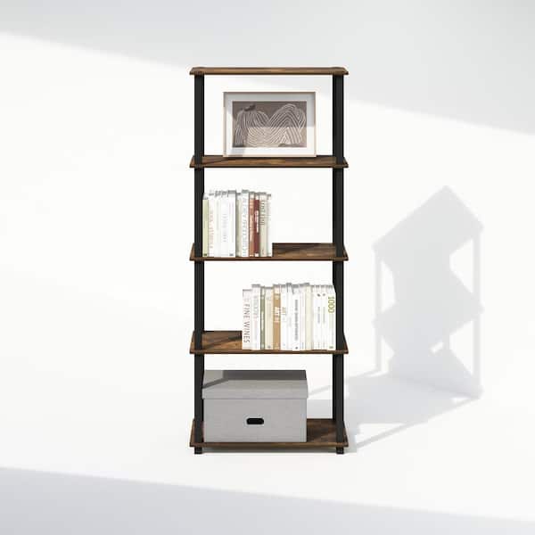 Turn-S-Tube 29.6 in. Tall Amber Pine/Black 3-Shelf Wood Bookcase with Square Tube (Set of 2)