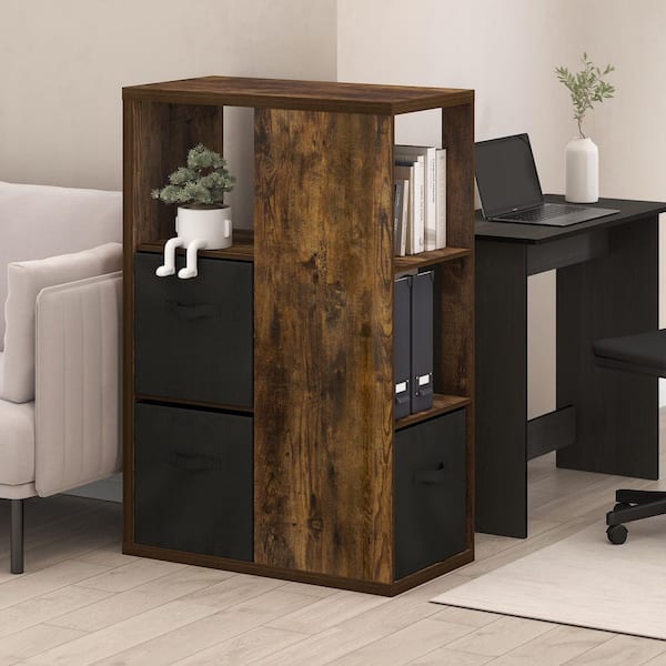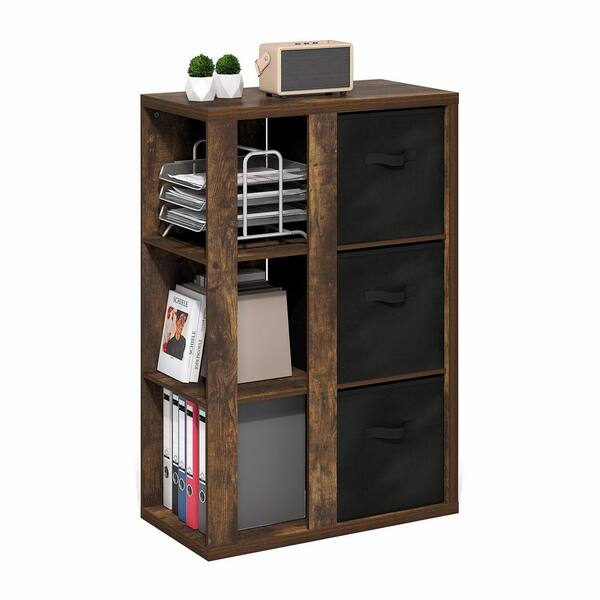 Viola 43.82 in. Tall Amber Pine/Black Wood 3-Shelf Standard Bookcase with 3 Storage Bins