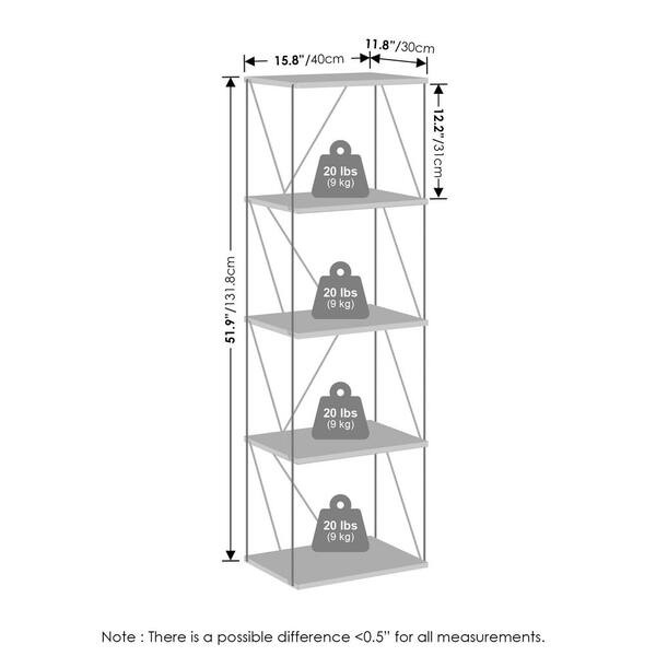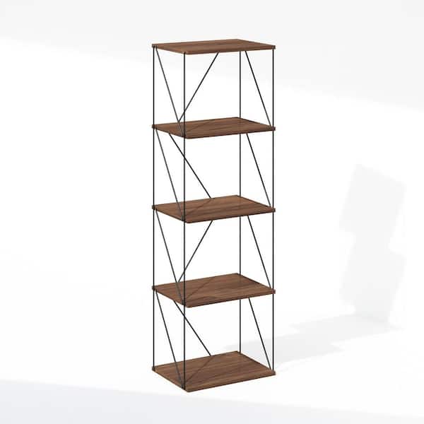 Wire 53.74 in. Tall Walnut Cove Wood 5-Shelf Metal Frame Bookcase
