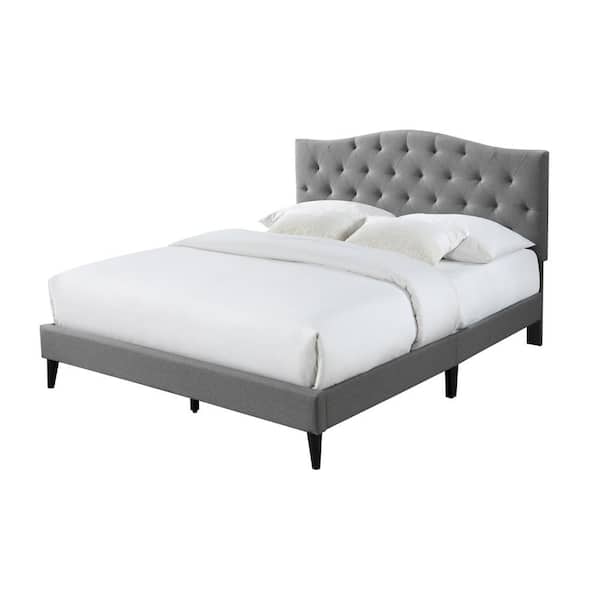 Driftwood Stone Silver Upholstered Queen Platform Bed with Tufted Arched Headboard