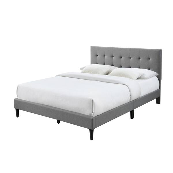 Westwood Stone Silver Upholstered Queen Platform Bed with Tufted Rectangle Headboard