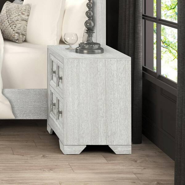 Artello Light Gray 2-Drawer 26 in. W Nightstand with Sunburst Pattern and Felt-Lined Top Drawers