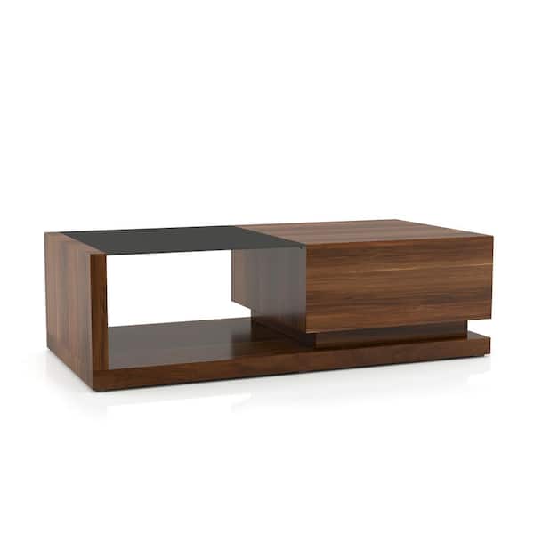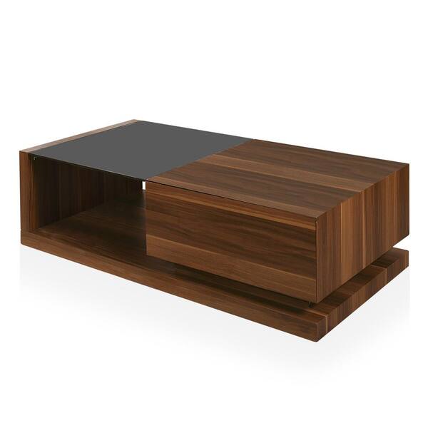 Ashlane 47.25 in. Black and Dark Walnut Rectangle Glass Coffee Table