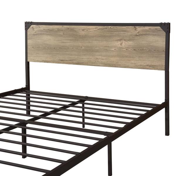 Build an industrial bedroom motif around the clean lines and simple, inviting flair of this platform bed. Offered in a choice of sizes, the bed boasts a wood finish headboard in a dark brown finish metal frame to create a mixed material design that offers simplicity and style to any bedroom. The metal bed includes bracket and bolt head accents that reinforce its rugged character while adding a touch of detail.