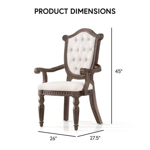 Banks Weathered Oak Fabric Upholstered Arm Chairs with Sheraton Shield Back and Diamond Button Tufted (Set of 2)