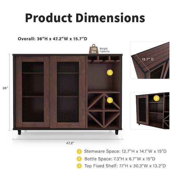 • Black metal mesh contrasts the rich dark walnut and riveted trim