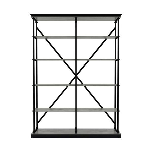 Blue River 58 in. W x 84.25 in. H Antique Gray and Black 5- -Shelf Standard Bookcase