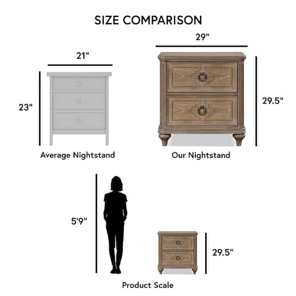 Brightwell Rustic Oak 2-Drawer 29 in. W Nightstand With USB C Power Ports