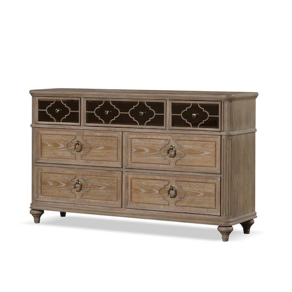Brightwell Rustic Oak 7-Drawer 64 in. Wide Dresser with Felt Lined Top Drawer