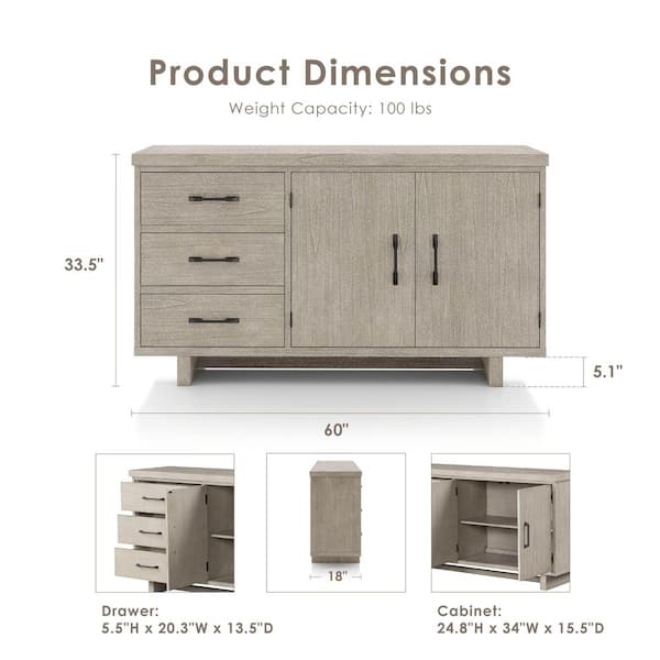 Bronin Natural Wood 60 in. Buffet Server with Drawers