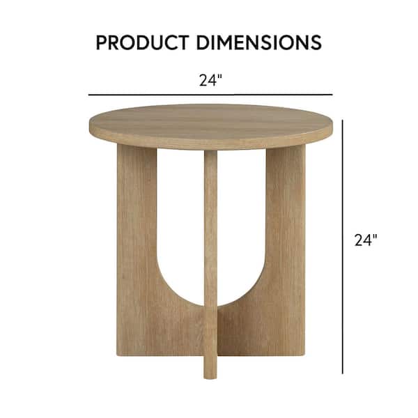 Calsen 3-Piece 36 in. Natural Round Wood Top Coffee Table Set with Cross-Arch Base