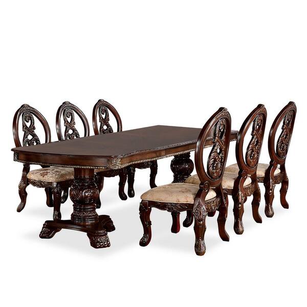 Caprock 7-Piece Rectangle Wood Top Brown Cherry and Tan Dining Table Set