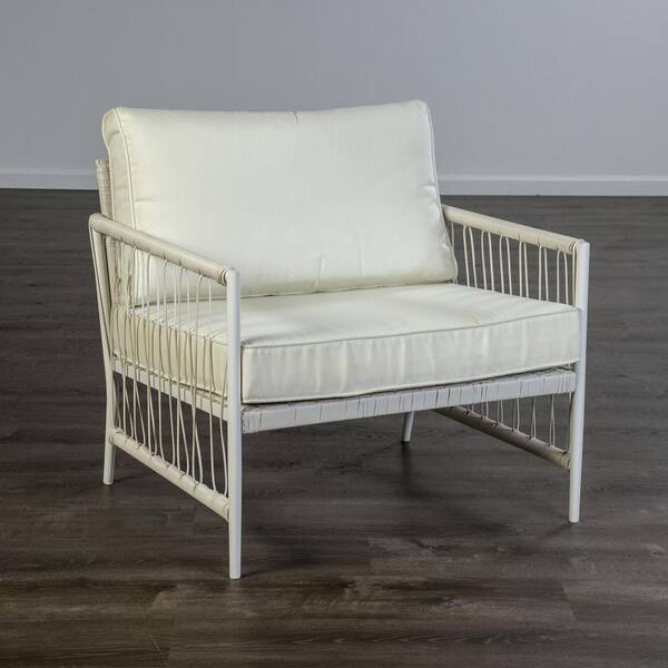 Cemini White 4-Piece Metal Patio Conversation Set with White Cushions