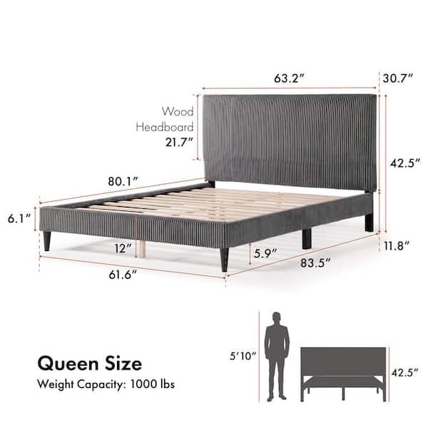 Claude Dark Gray Wood Frame Queen Platform Bed With Removable Corduroy Cover