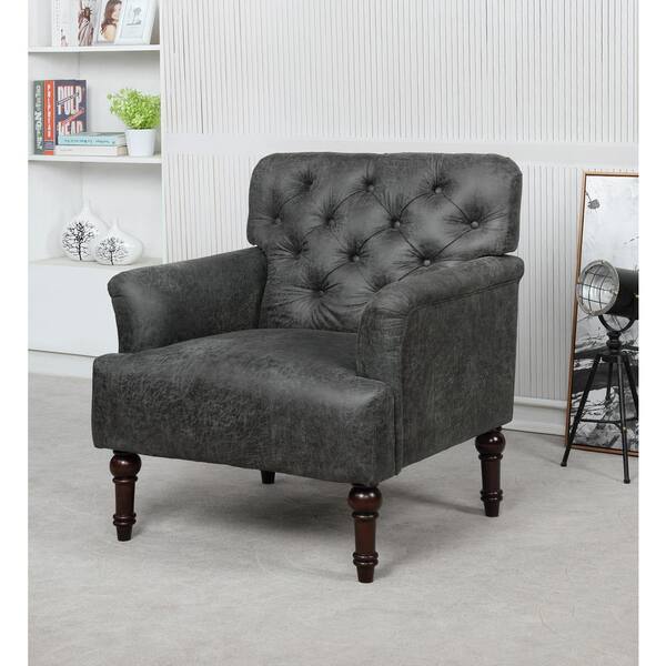 Danelle Dark Gray Faux Leather Upholstery Button Tufted Accent Chair