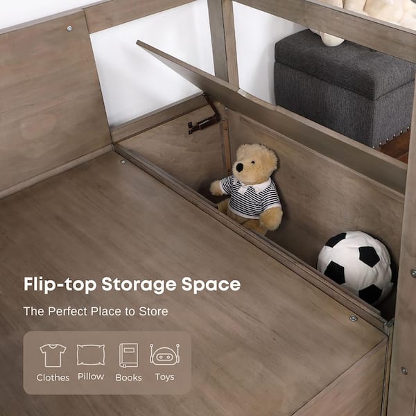 Dovalle Warm Gray Twin over Workstation Kids Loft Bed with Bookcase