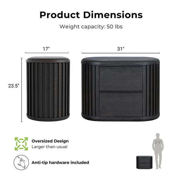 Eastbrook Modern Black 2-Drawer 31 in. W Nightstand With USB Charging Ports