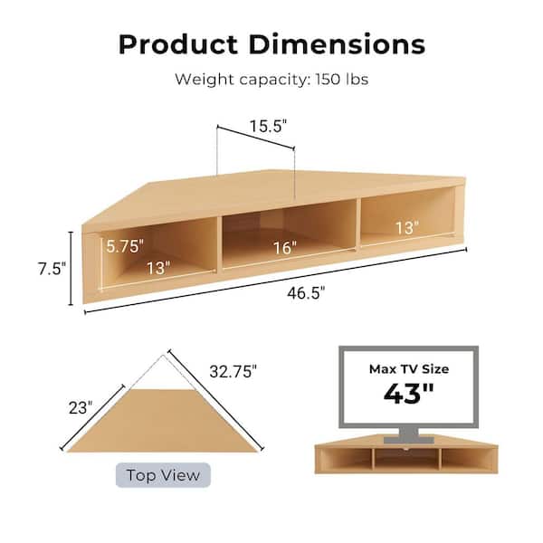 Emmeline 47 in. Gingko/Light Maple Particle Board Corner Floating TV Stand Fits TVs Up to 45 in. with Cable Management