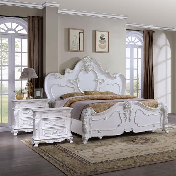 Feliciano II 3-Piece White Wood Frame King Panel Bedroom Set with 2 Nightstands With Sintered Tops