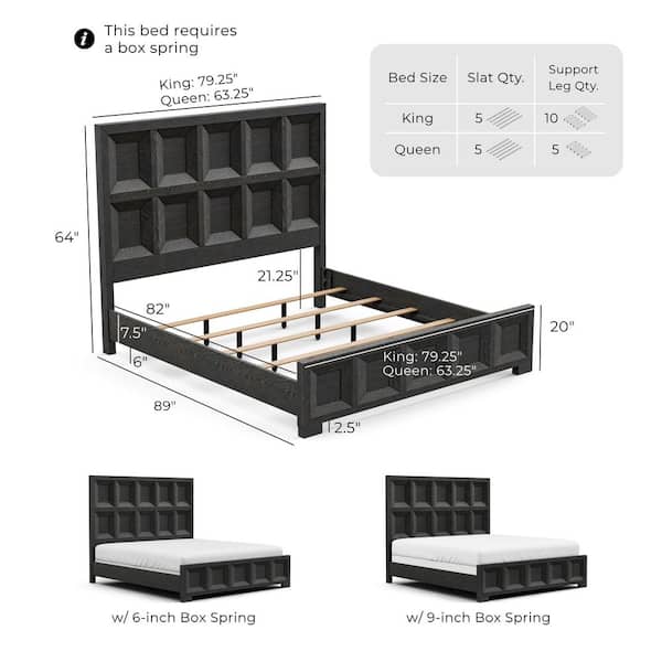 Flonnin 3-Piece Weathered Black Wood Frame King Panel Bedroom Set with Oversized Nightstand and Felt-Lined Top Drawers