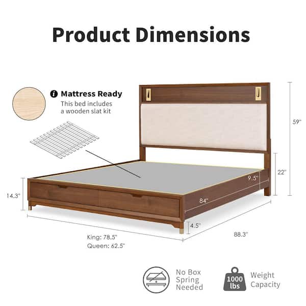 Forma 3-Piece Mid Century Walnut Wood Queen Storage Platform Bedroom Set with 2 Nightstands