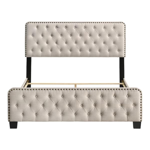 Foxfire Beige Queen Panel Bed with Tufted Upholstery