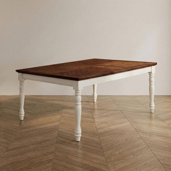Galentine Vintage White and Dark Oak Wood 4 Legs Expandable Dining Table (Seats 8)
