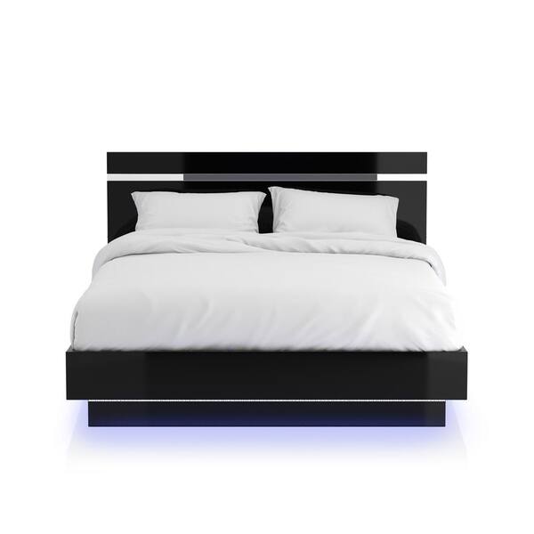 Gensley Black and Chrome Wood Frame King Platform Bed with Embedded LED Light